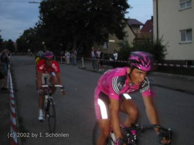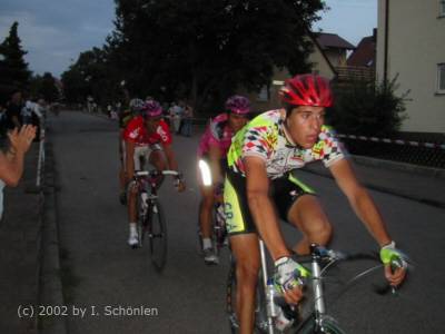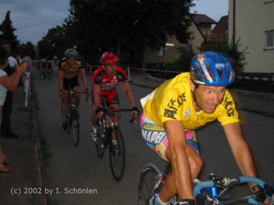 Erik Zabel startet am 22. August 2002 in Metzingen So war es in der örtlichen Presse zu lesen. Doch Erik fuhr ein Mehrtages-Rennen in Holland. Der Zuschauermagnet war also nicht in Metzingen. Aber Namen wie Jens Lehmann, Scott McGrory, Bruno Risi, Andreas Kappes, Danilo Hondo, Lars Teutenberg, Gerd Dörich und Adriano Baffi versprachen guten Radsport. So war es denn auch. Zusammen mit der Stadtverwaltung Metzingen organisierte Winfried Holtmann wieder ein gewohnt gutes Radrennen. Start war gegen 19 Uhr mit der "schnellen Runde". Es wurde vor ca. 8.000 Zuschauern zunächst der Fahrer mit der schnellsten Rundenzeit ermittelt. Anschließend boten die ca. 40 Fahrer ein spannendes Rundstreckenrennen, welches nach 1:48 Std. (ca. 45 km/h) mit dem Sieg von Silvio Martinello beendet wurde. Auf den folgenden Plätzen landeten Jens Lehmann, Adriano Baffi und Andreas Kappes. Der Lokalmatador Patrick Betz aus Leonberg konnte mit dem 6. Platz einen Achtungserfolg erzielen. (Kennern fällt jetzt zurecht der Namen von Werner und Heinz Betz ein). Die Top-Trophy geht auf die ehemalige Coca-Cola-Trophy zurück, welche ebenfalls von Holtmann organisiert wurde. Das Konzept ist so einfach wie spannend: In verschiedenen Städten findet meist in den Abendstunden ein Rennen auf einem schnellen Stadtkurs (1.000 m bis 2.000 m) statt. In diesem Jahr waren es Städte wie Sindelfingen, Böblingen, Metzingen, Mannheim, Ulm und Heppenheim. Sieger ist am Schluss, der Fahrer mit den meisten Punkten. Im Jahr 2002 war es Danilo Hondo vor Andreas Kappes und Silvio Martinello. Am 27. März 2003 ist Winfried Holtmann verstorben. |